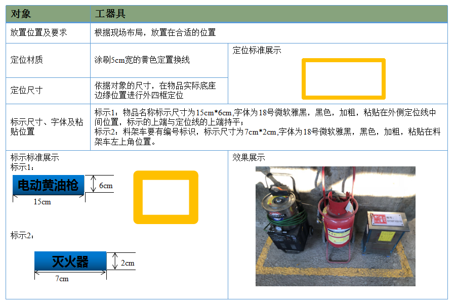 規(guī)定物品堆放、工具放置、通道、班組(個(gè)人)工作場地位置。