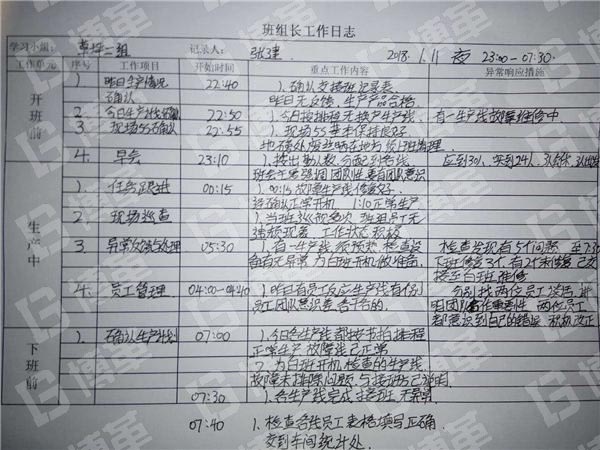 b)通過(guò)《班組長(zhǎng)工作任務(wù)》的學(xué)習(xí),班組長(zhǎng)根據(jù)實(shí)際工作編寫(xiě)工作任務(wù)表并填寫(xiě)工作日志: