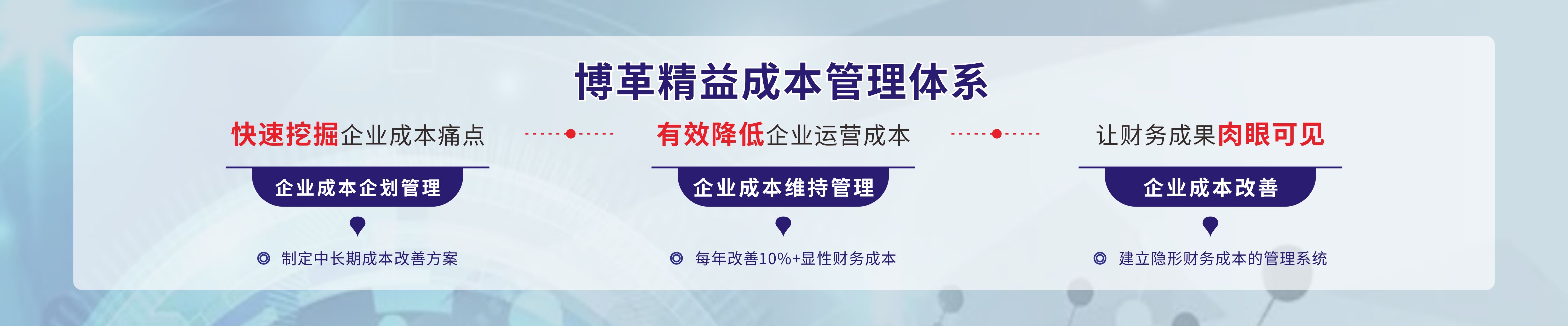 對于每家企業(yè)來講成本管理都是其管理重點(diǎn),但真正把成本管控到位的企業(yè)少之又少。其關(guān)鍵原因是沒有把成本管理從企業(yè)的戰(zhàn)略管理角度進(jìn)行總策劃。博革咨詢的精益成本管理把成本管理區(qū)分成3大部分,即企業(yè)成本企劃管理、企業(yè)成本維持管理、企業(yè)成本改善。