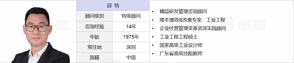 10年產品IE經驗;擅長從點線面體化解趨勢問題;深諳公司全面管理變革實踐之道;擅長利用價值流工具解決體系問題、聚焦問題;8年精益設計咨詢經驗,資深精益設計工作坊操盤手;擅長解決問題的路徑與地圖模型設計。