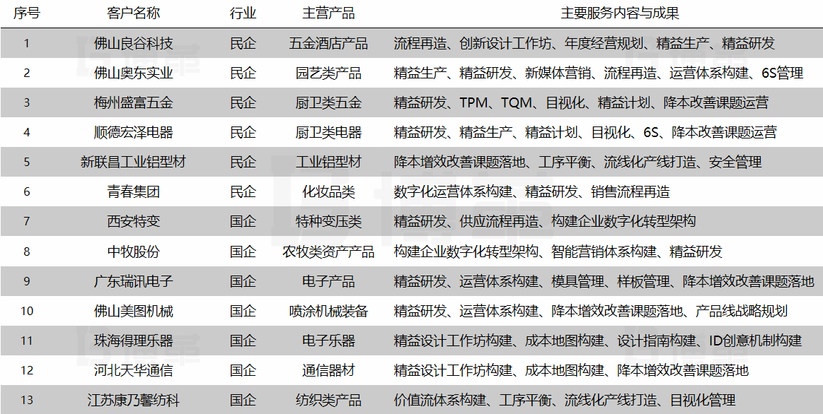 主要咨詢服務項目成就