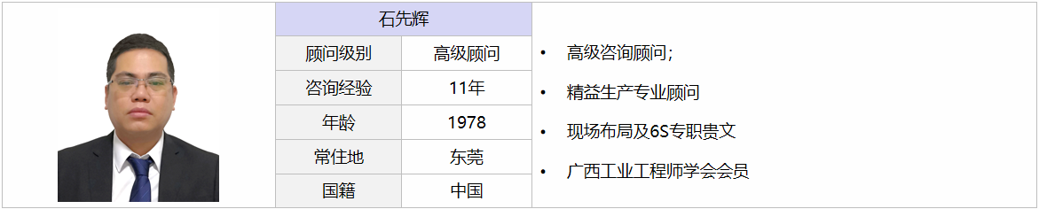 擅長(zhǎng)業(yè)務(wù):精益生產(chǎn)、成本控制、車(chē)間布局、IE改善、生產(chǎn)效率改善、品質(zhì)提升、自動(dòng)化設(shè)備革新、計(jì)件報(bào)工系統(tǒng)改善、績(jī)效考核、年度經(jīng)營(yíng)戰(zhàn)略、5S管理、目視化、六西格瑪、流程梳理等;
