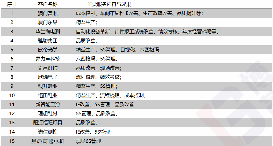 主要咨詢(xún)服務(wù)項(xiàng)目成就