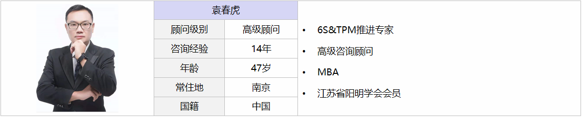 專注于精益生產(chǎn)領域的研究與運用。系統(tǒng)掌握精益生產(chǎn)理念和技術。擅長啟發(fā)性教育,嫻熟運用TOYOTA KATA進行精益人才育成;擅長6S、TPM、精益生產(chǎn)理論講授,現(xiàn)場輔導落實,以技術性改善為基礎實施全面改善;在咨詢實踐中注重結合陽明心學以及精神分析的理論,秉持人文關懷、重視員工個人發(fā)展。