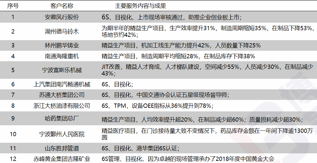 熟悉行業(yè):鑄造、鋼鐵、新材料、汽車、石油、化工、交通、機械、醫(yī)療、制藥、紡織、路橋、礦業(yè)等企業(yè)的精益現(xiàn)場管理、6S管理、TPM設備管理等;