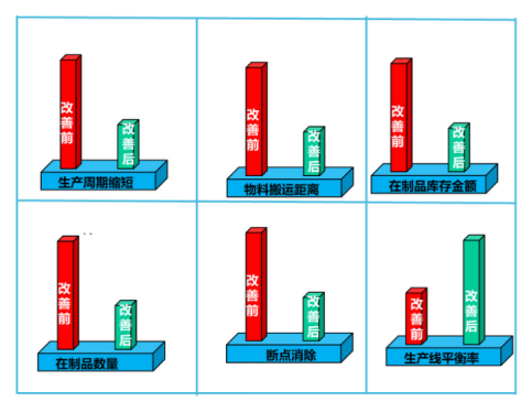 一、項目背景: 01 公司簡介 成立于2015年,是產(chǎn)銷研一體的自動化 產(chǎn)品/設備線束方案解決商。公司產(chǎn)品包含端子臺、繼電器模塊、 總線IO、非標設備線纜定制、整機線束打包、機器人線束、無塵 拖鏈及線纜全套外包、工業(yè)連接器、快速插線端子9大系列。廣泛 應用于汽車、3C、鋰電(新能源)、激光、光伏、半導體、傳統(tǒng) 制造等行業(yè)的自動化設備。 公司規(guī)模及產(chǎn)能在華南地區(qū)處于一線,銷售網(wǎng)絡覆蓋全國各大區(qū) 域,在深圳、蘇州、成都、長沙等核心工業(yè)城市均設立了銷售公司。 02 案例背景 因工廠需要搬遷到新工廠,而老工廠裝配采用工段式分離生產(chǎn)方式,(例:整條線進行剪編織,完成訂單后再轉下工段剝芯線,完成訂單后再搬運到下工序等) 公司的主要客戶為自動化 產(chǎn)品/設備生產(chǎn)商,需求生交期非常短,而且需要線束配套出貨,需現(xiàn)有生產(chǎn)方式過程中斷點多,導致生產(chǎn)周期長,為滿足出貨交期需要提前生產(chǎn)很多成品與半成品庫存,又間接導致現(xiàn)場WIP多,放置混亂,倉庫面積大,占用資金大等問題。 在新廠規(guī)劃與線體設計時迫切需要解決的這些問題。同時,現(xiàn)有的工廠生產(chǎn)模式還具有如下問題: 1 生產(chǎn)效率低 生產(chǎn)布置考慮不全面,布局不合理,工位不平衡,過程搬運多,部分工位作業(yè)節(jié)拍短,導致實際生產(chǎn)效率低 2 物流不順暢 沒有按產(chǎn)品工藝流程布局,物流交叉,迂回多,搬運距離遠,運行不順暢。 3 交付不及時 按訂單批量流動,生產(chǎn)過程線斷點多,生產(chǎn)過程放置時間長,導致部分訂單交付不及時。 4 員工搬運作業(yè)強度大 生產(chǎn)布局按功能布局,搬運距離長,次數(shù)多,按單量搬運并無搬運載具,單次搬運重,導致搬運強度大,效度低。 二、項目開展 01 項目方向確定: 根據(jù)現(xiàn)狀調查和分析,博革咨詢認為,打造按產(chǎn)品工藝連續(xù)流的生產(chǎn)方式,降低成本金額,核心工作是要縮短生產(chǎn)周期、降低中間再制品。 按產(chǎn)品工藝重新合理布局與設計連續(xù)流的生產(chǎn)線,增加并行工位間流動載具,并確定最小批量流動,是改變達到這一目標的治標又治本的好方法。 02 項目前期調查 1 鉆機裝配產(chǎn)品裝配工藝流程:工藝流程: 2 裝配時間測量 3 現(xiàn)有線體布局 03 方案設計與比較: 1. 作業(yè)臺使用單獨精益作業(yè)臺,方便調整優(yōu)化 2. 按產(chǎn)品族分類設計產(chǎn)線,實現(xiàn)連續(xù)流動。 3. 將生產(chǎn)過程使用設備嵌入生產(chǎn)線 4. 線體中物料采用周轉小車 5. 跨距離搬運(如倉庫到產(chǎn)線,產(chǎn)線到包裝用AGV搬運 6. 因包裝需要各種線束配套,采用集中包裝方式 04 4.線體設計 05 工序分析與改善 根據(jù)ECRS原則對裝配工序進行調整。提高產(chǎn)線平衡率 06 布局改善實際效果 1 1.項目取得的效果: 2 項目推進感想 “如果你不能迅速把產(chǎn)品開發(fā)時間減半、訂貨時間減少70%、生產(chǎn)周期縮減80%,那你一定是哪兒做錯了”。因此,為了縮短生產(chǎn)周期,車間以組建生產(chǎn)線、工序間改善為抓手,著力實現(xiàn)生產(chǎn)周期優(yōu)化。通過打破班組間壁壘,再造生產(chǎn)組織,整合4個班組到1個班組,將多個生產(chǎn)工序段拉成新的生產(chǎn)線,降低產(chǎn)線瓶頸工序時間,消除過程等待浪費。產(chǎn)線重組消除了從裁切到包裝搬運浪費,單件周轉距離從630米減少至80米,斷點12個降為3個,生產(chǎn)周期從48小時降至6小時。 實現(xiàn)一連續(xù)流生產(chǎn)的目的是降低在制品庫存,使生產(chǎn)中存在的浪費現(xiàn)象暴露出來,并不斷排除,使成本下降,而任何一個問題都會阻礙連續(xù)流的生產(chǎn)方式的順利進行。車間通過兩方面措施來實現(xiàn):一是要在沒有庫存的前提下,實現(xiàn)在必要的時刻得到必要的零件,為使各種零件生產(chǎn)和供應同步,統(tǒng)一生產(chǎn)節(jié)拍,車間利用作業(yè)組合票和偏差調查表工具,并進行整改,著力消除工序內(nèi)浪費;二是提高過程能力,著力解決排故時間長、信息交流不通暢、工藝紀律差等這些問題,實現(xiàn)作業(yè)標準化,課題累計完成改善29項。 生產(chǎn)線的升級解決了孤島式批量生產(chǎn)的方式,實現(xiàn)了連續(xù)流生產(chǎn)模式,在線庫存金額從60萬降為10萬,在制品從50000件降至5000件。車間在建設連續(xù)流生產(chǎn)方式時,遵循精益生產(chǎn)思想,通過連續(xù)流生產(chǎn)、ECRS工序改善培養(yǎng)多能工、使用自働化工裝等方式,逐步實現(xiàn)對原有生產(chǎn)模式的升級改造。項目取得了較好的效果。