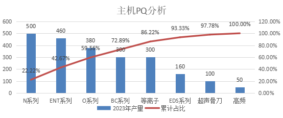 根據工廠的產品的產品族分析,工廠活檢針類產品的銷量占產品的32.7%,為一次性耗材第一,活檢針,鼻刨刀,鋸片,等離子,磨鉆頭,銑刀,顱骨鉆頭量占比總量的85.5%。
