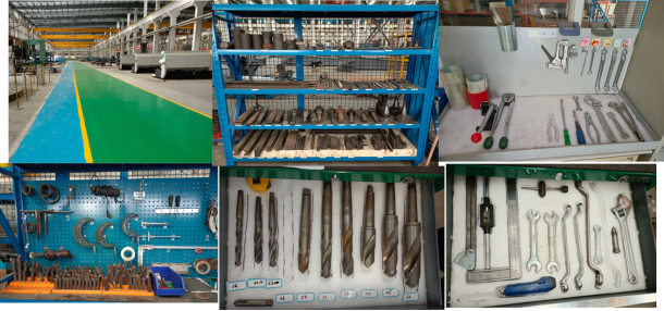 ③ 金工車間、設備車間設備復原的本色,工具四定管理,并明確標識,便于快速找物。