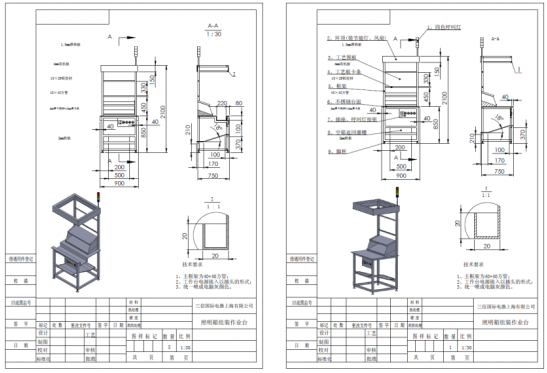 對作業重新分配、工序平衡后,依據所需實現功能重新設置工作臺的長寬高,設計新的精益工作臺