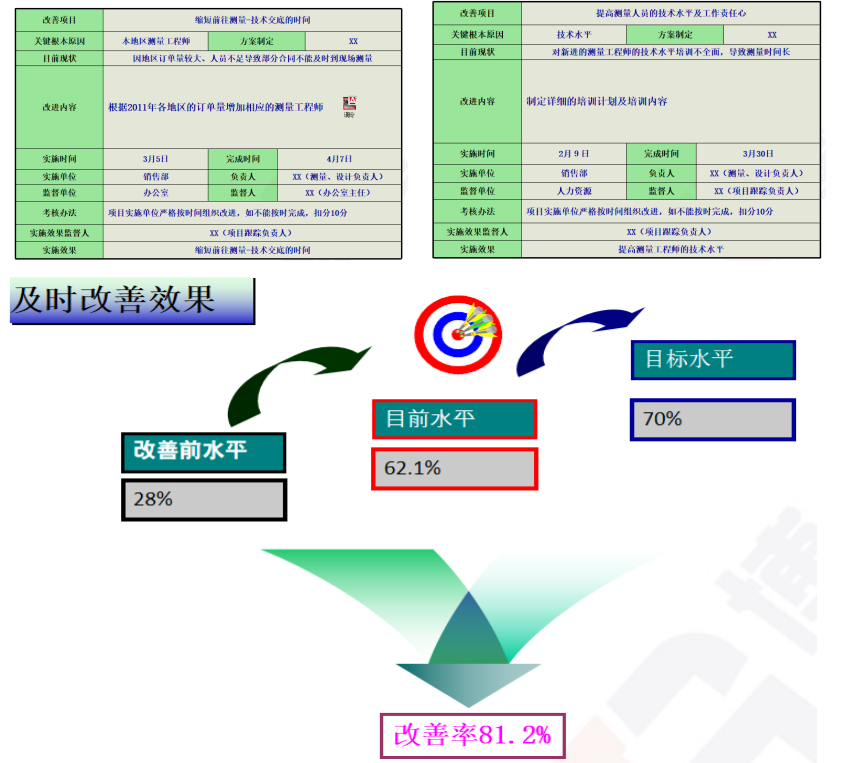 我們項目小組經過為期6個月的努力,按照六西格瑪DMAIC的流程,有效的提銷售部、信用部、生產部之間的銜接效率,并取得了優異的成績,縮短了公司的運轉周期,客戶期望的交付率由原來的28%提高到71%。 在項目的實施過程中,讓我們對6西格瑪有了新的認識: