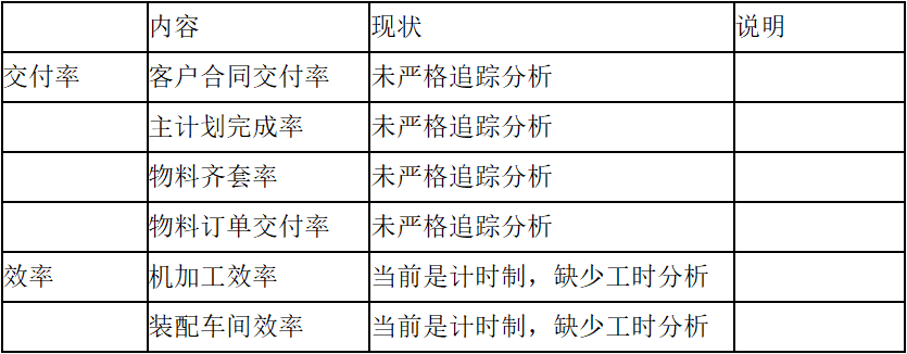 (7)技術準備計劃:技術部門有專用系統管控項目進度,但該系統無法批量下載數據,實際缺少技術準備計劃的及時率考核,沒有技術準備計劃的經驗工時和期量