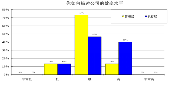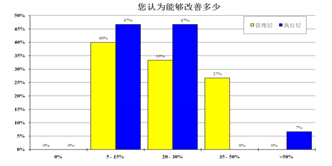 大部分的管理層和員工都認(rèn)為公司的效率改進(jìn)幅度可達(dá)到 ,說(shuō)明管理層對(duì)目前的