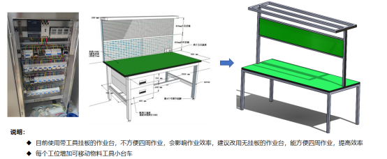4、電控箱改善作業(yè)臺(tái)及改變作業(yè)方式,估算效率可升10%-15%。