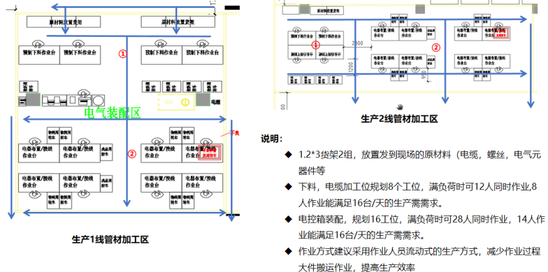5、車間按2組線方式布局,在訂單變化時(shí)可靈活按需開(kāi)線,減少能耗