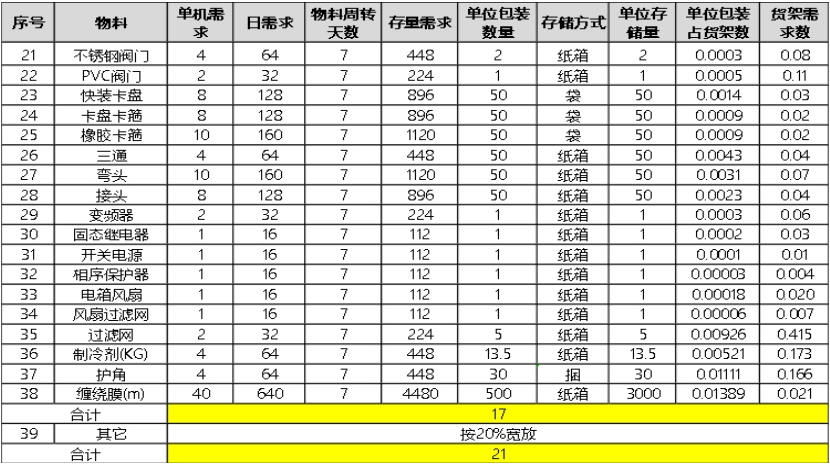 倉(cāng)庫(kù)庫(kù)位需求測(cè)算: