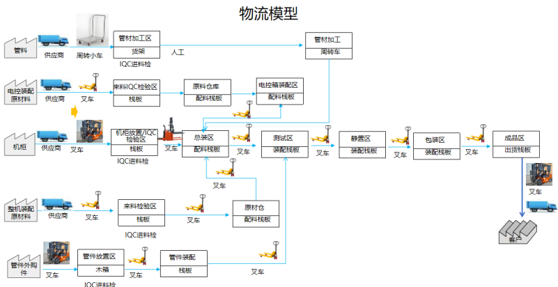1. 整機(jī)裝配工位叉車運(yùn)送,工序間傳送不方便