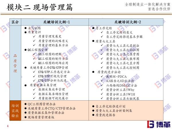 歡迎您訪問博革咨詢官網!博革咨詢是中國首家整合精益生產/六西格瑪/流程再造的咨詢公司,專注于提供 精益生產6S現場管理、TPM設備管理、精益工廠布局、專業目視化、精益供應鏈、精益研發六西格瑪管理、智能制造等綜合性問題解決方案并負責落地實施。