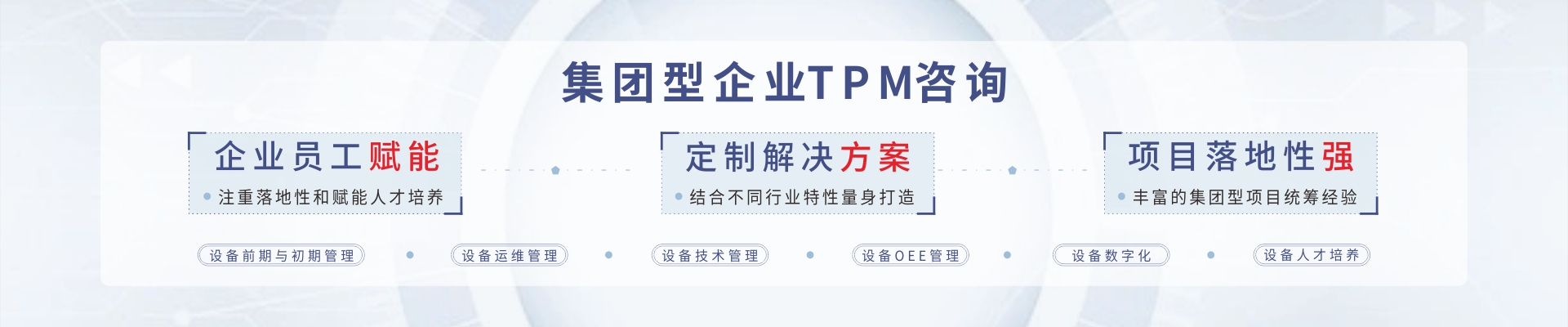 02 具備同行背景、設(shè)備專業(yè)背景的PM咨詢顧問 與AM咨詢顧問相結(jié)合輔導(dǎo)模式 博革咨詢TPM推進(jìn)采取“自主維護(hù)”+“專業(yè)維護(hù)”雙軌制的模式;PM的咨詢老師具有設(shè)備管理專業(yè)背景(設(shè)備工程師/電氣工程師/二級技師/PLC工程師/中國設(shè)備協(xié)會會員等),在大型企業(yè)設(shè)備總監(jiān)/經(jīng)理的從業(yè)經(jīng)歷,并具有大型線纜行業(yè)經(jīng)驗,擅長解決設(shè)備專業(yè)難題;AM的咨詢老師擅長自主維護(hù)標(biāo)準(zhǔn)和流程管理,營造全員改善氛圍,提升設(shè)備維護(hù)技能等。 | ![]() |