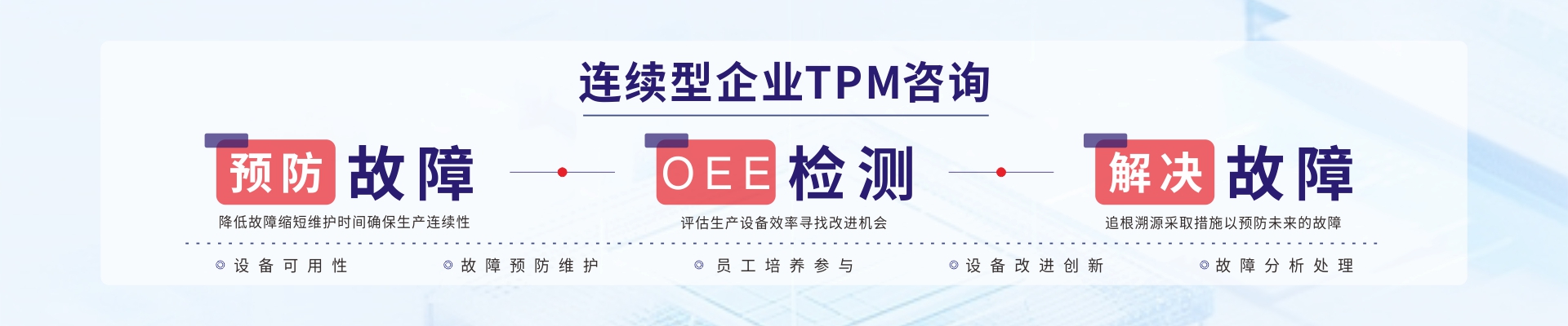 04 設備OEE綜合效率管理 建立公司層面的設備OEE綜合效率管理體系,博革咨詢將根據企業的生產特性選擇OEE管理體系,離散型行業和連續型行業的差異、設備密集型行業和人員和設備相交互的行業的差異,定制設計企業的設備OEE管理體系,讓OEE真正反應企業的運行能力。 用數字化的推進保證數據采集的準確性和及時性。生產過程中產生的六大浪費(廢品損失、返工損失、空轉損失、速度損失、換型損失、故障損失)的計量過程中怎樣保證其真實性、及時性是OEE管理的前置條件。在數字化導入前用橫向監督方式保證其數據的準確性,數字化導入過程中博革將協助甲方與第三方軟件公司協同,更快、更有效的導入信息化系統。 建立OEE持續改善機制,讓全員參與推動OEE改善。從日常業績對話到5why根因分析,博革咨詢將協助甲方建立日常的持續改善機制和關鍵性問題的突破解決。 |